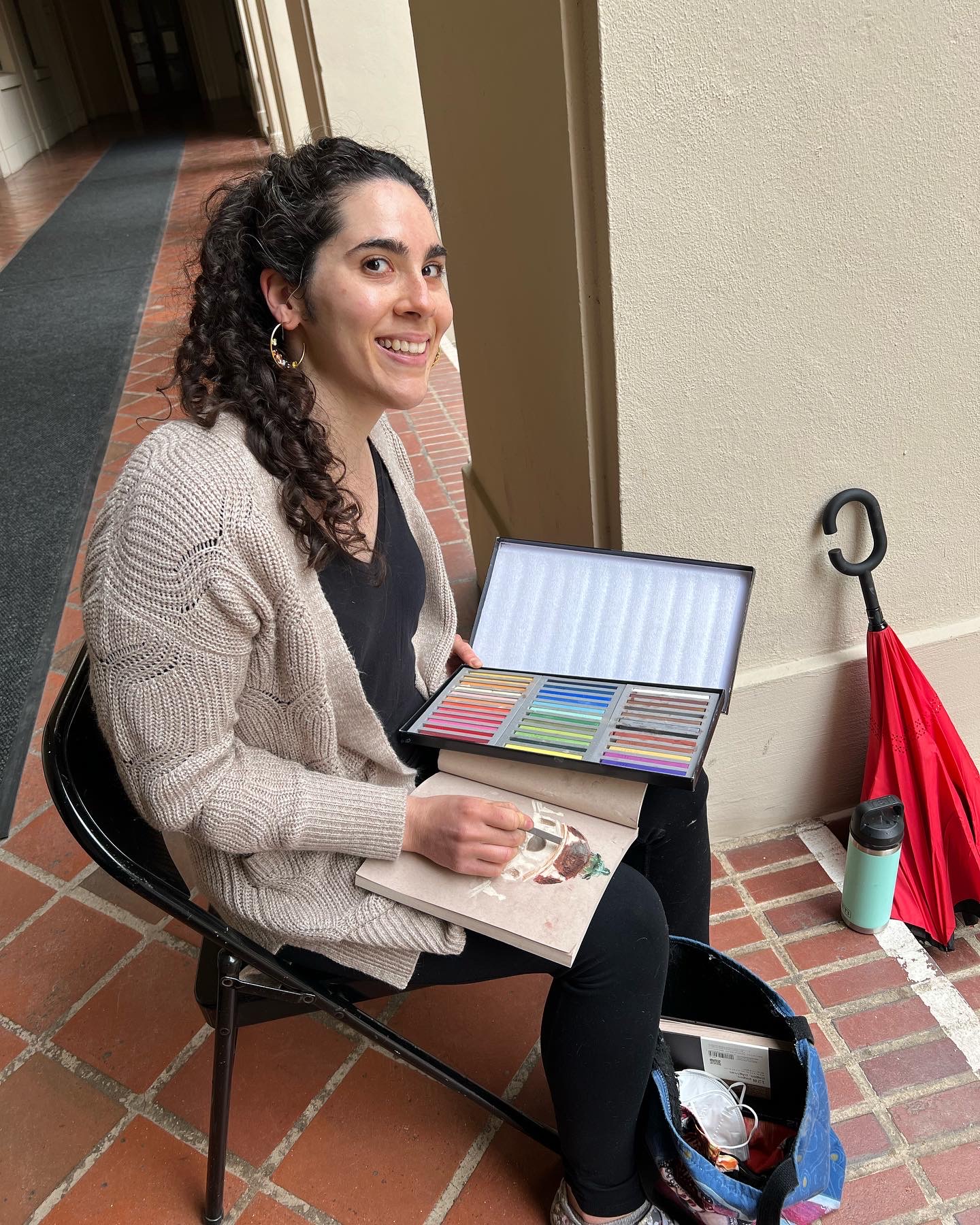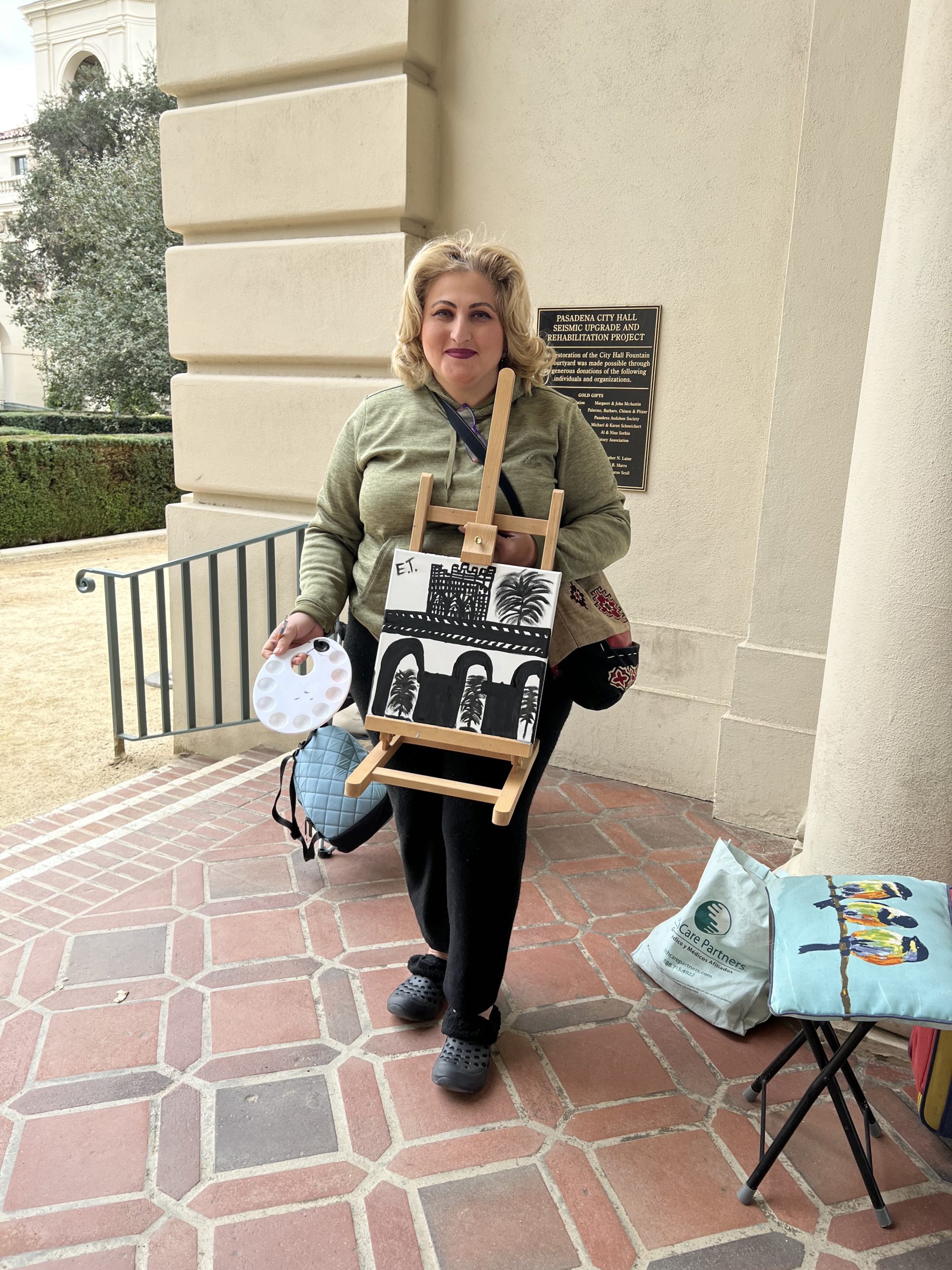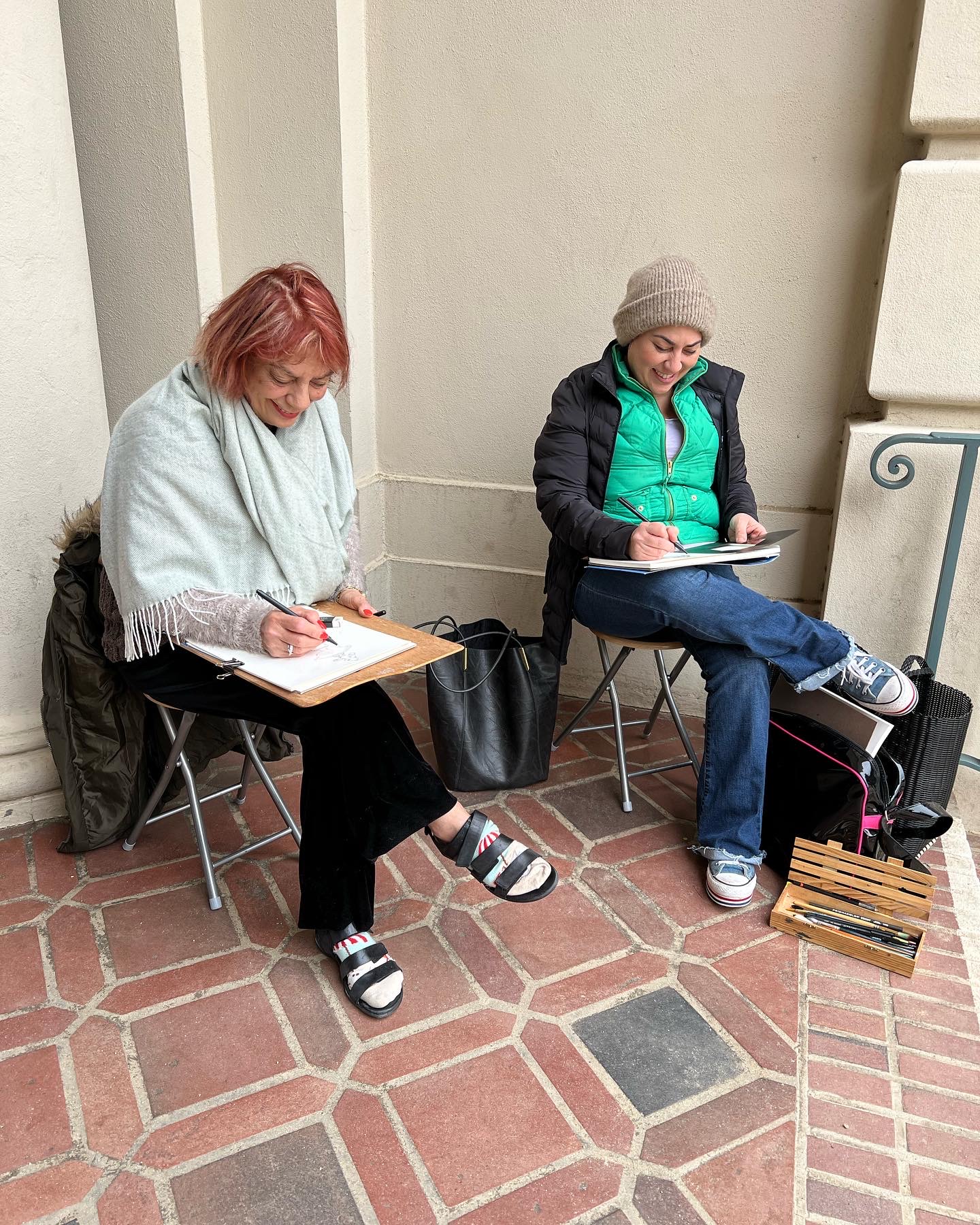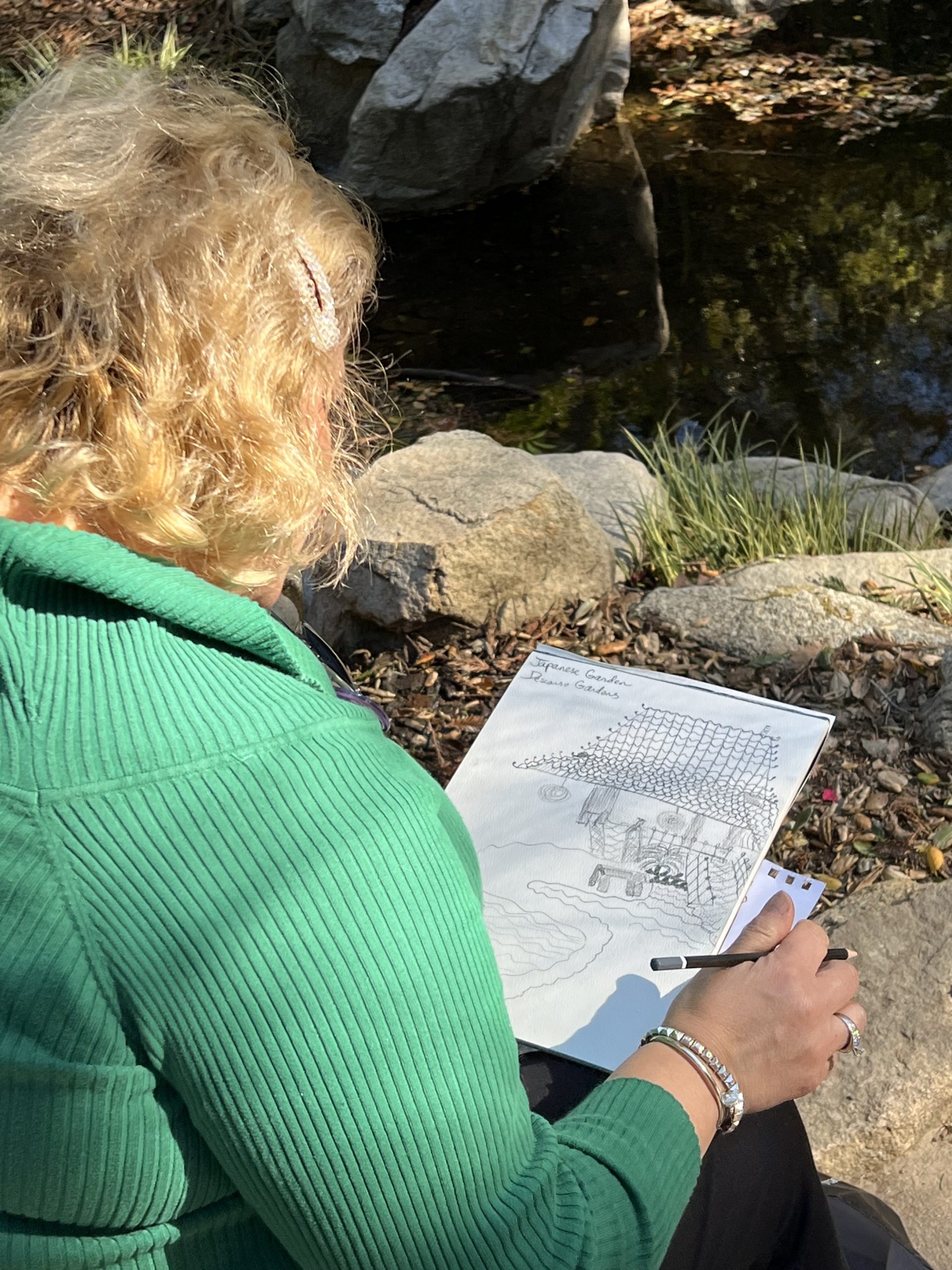 Our locations so far have been Pasadena City Hall and Descanso Gardens. Even though it rained the first Saturday, we found cover inside the building and thoroughly enjoyed creating under romantic raindrops!